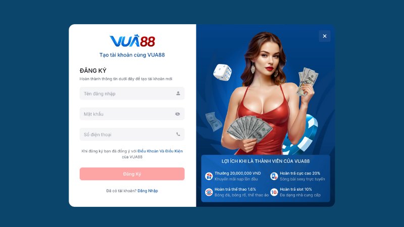 Việc đăng ký và đăng nhập trên Vua88 được thiết kế đơn giản, nhanh gọn chỉ trong vài bước. Cụ thể như sau: